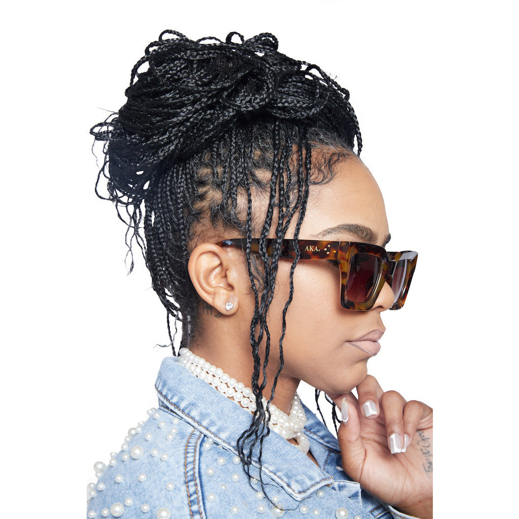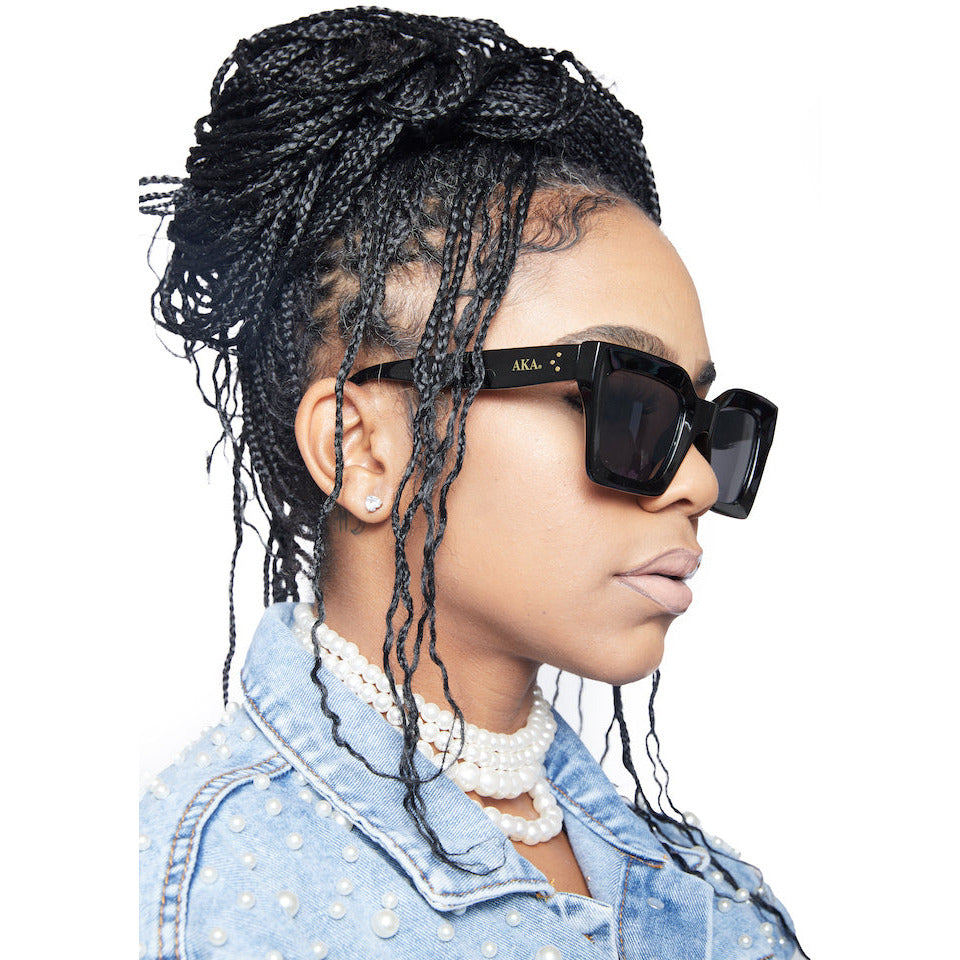 Polycarbonate (PC) sunglasses with gold "AKA®" letters on the side.