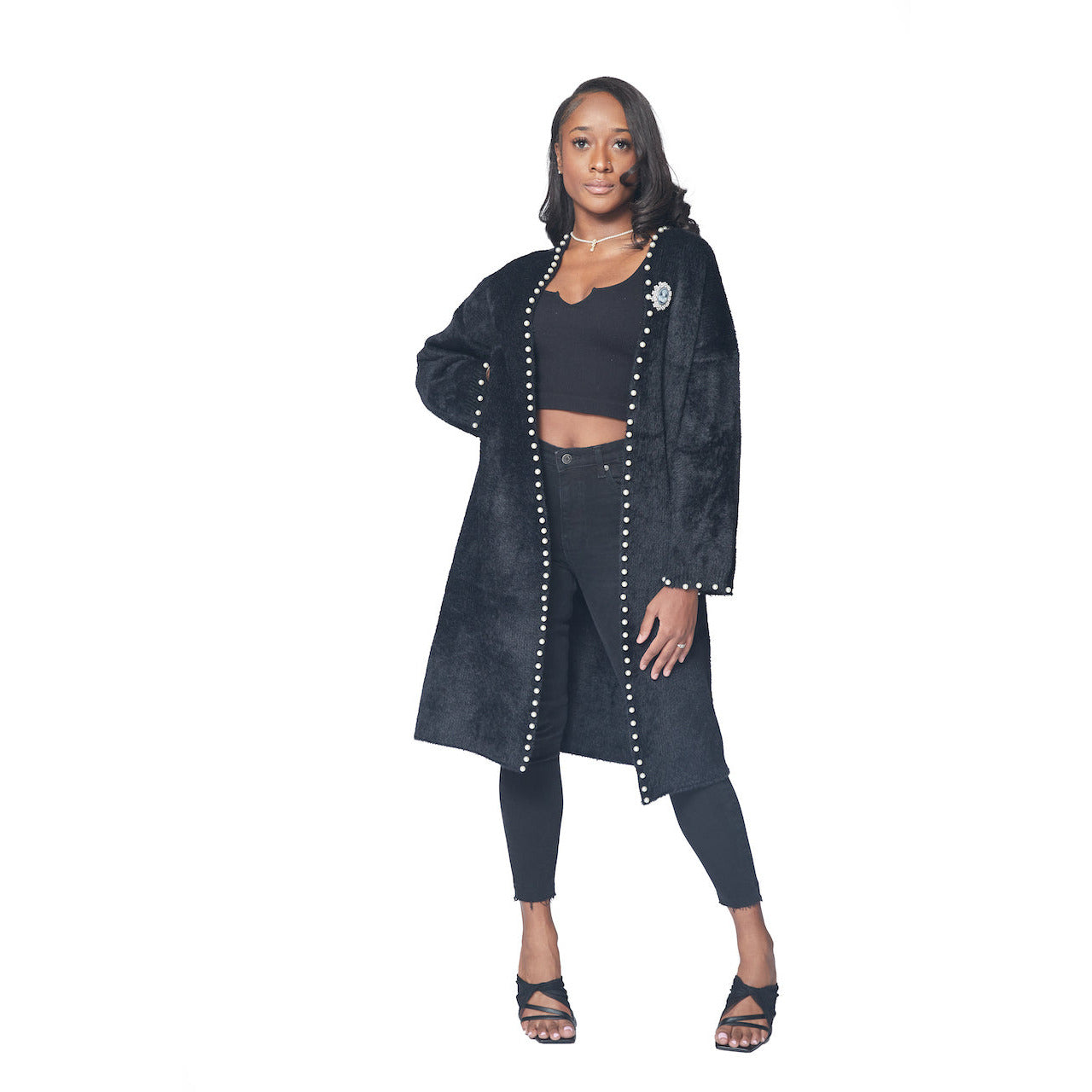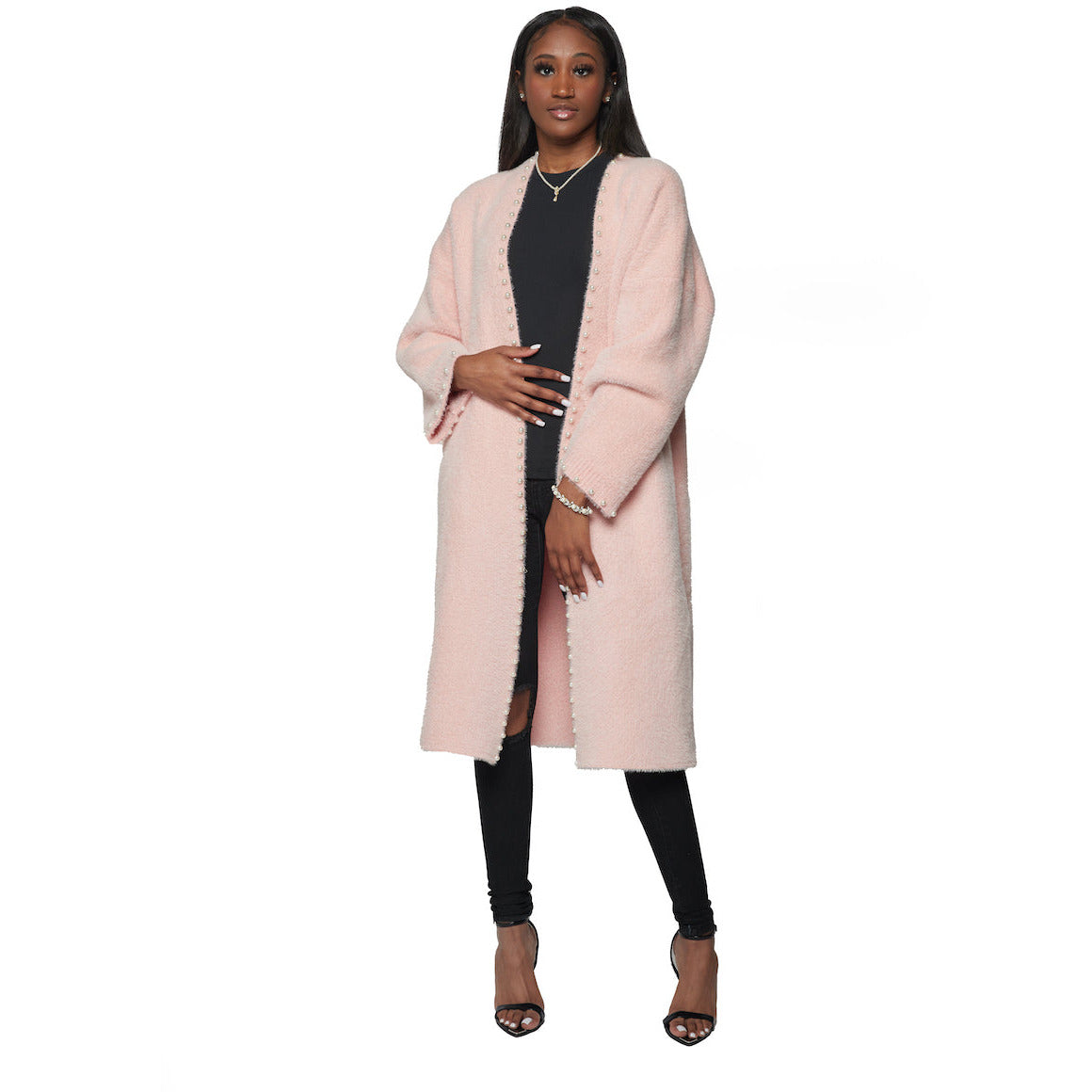 Beaded Mink-like Knitted Cardigan