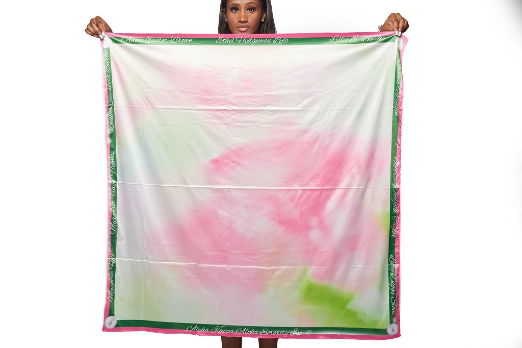 Founders Scarf (Pink/Green abstract) - Polyester Silk/40" X 40"