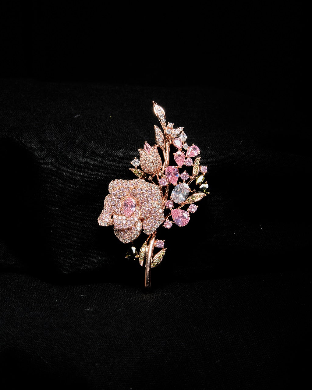Rose gold plating Tea Rose with light pink zircon rhinestones