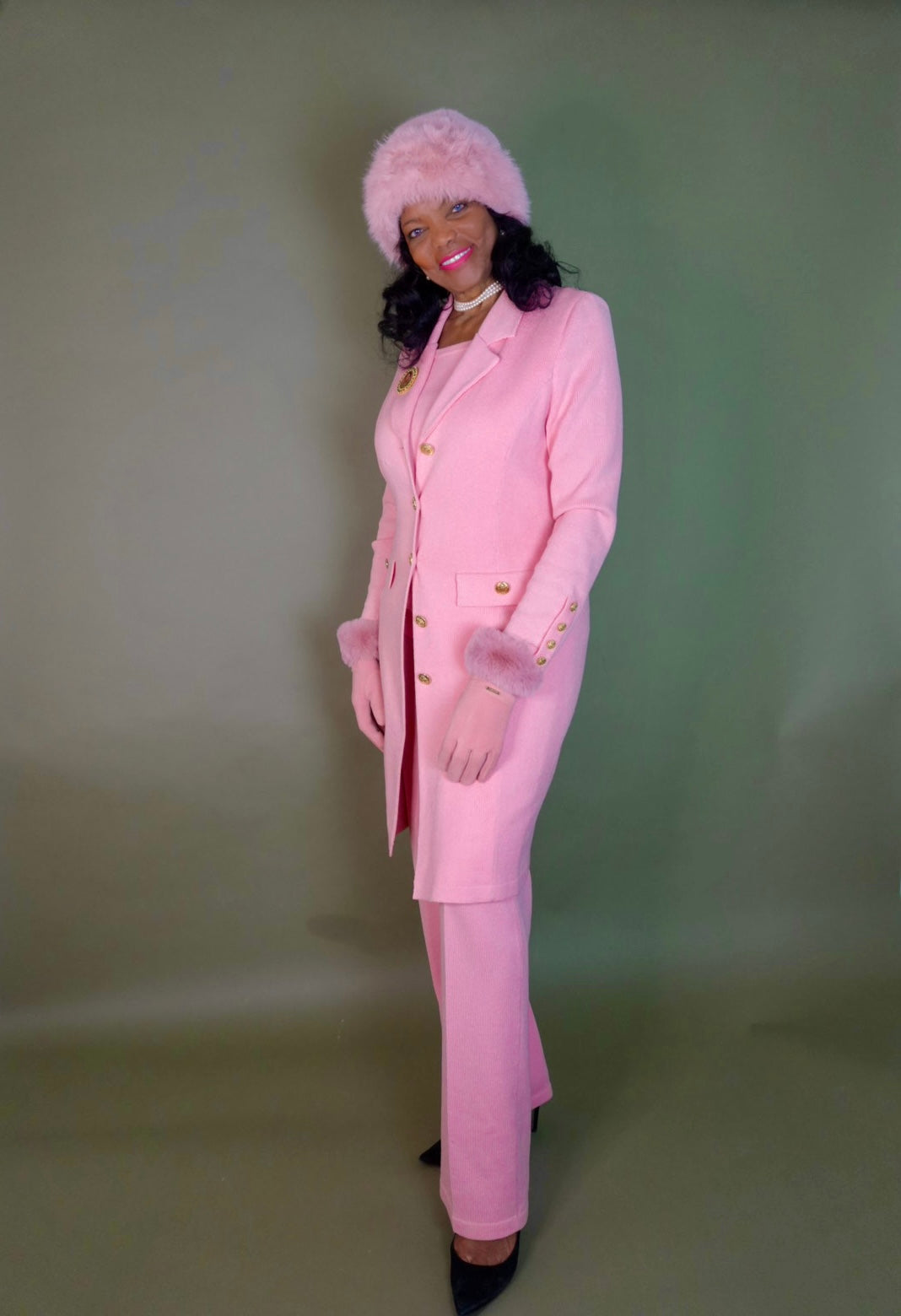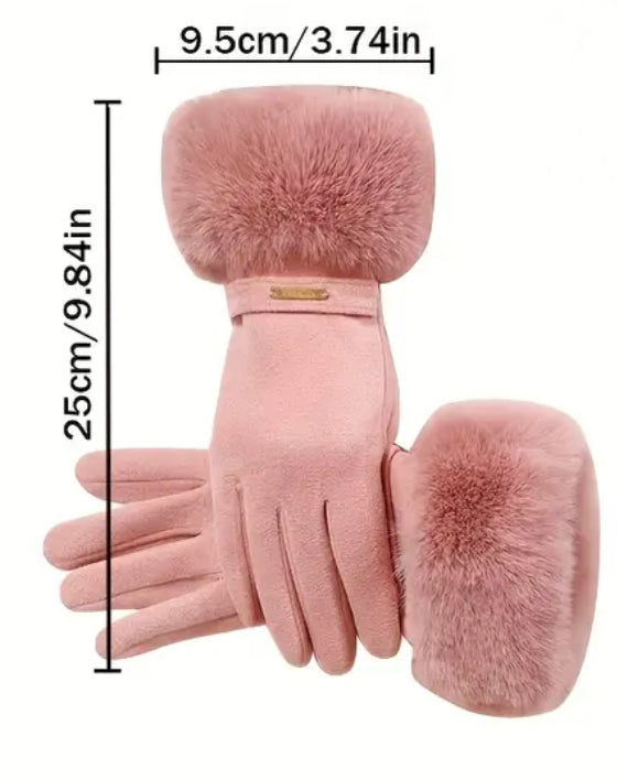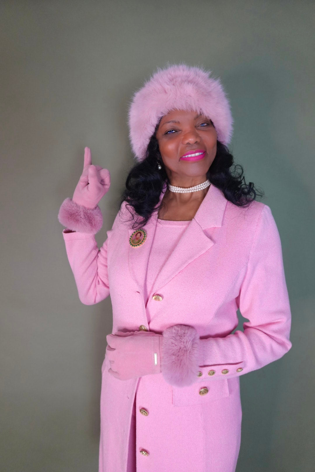 Stay warm and fabulous in our pink fur hat and gloves set!