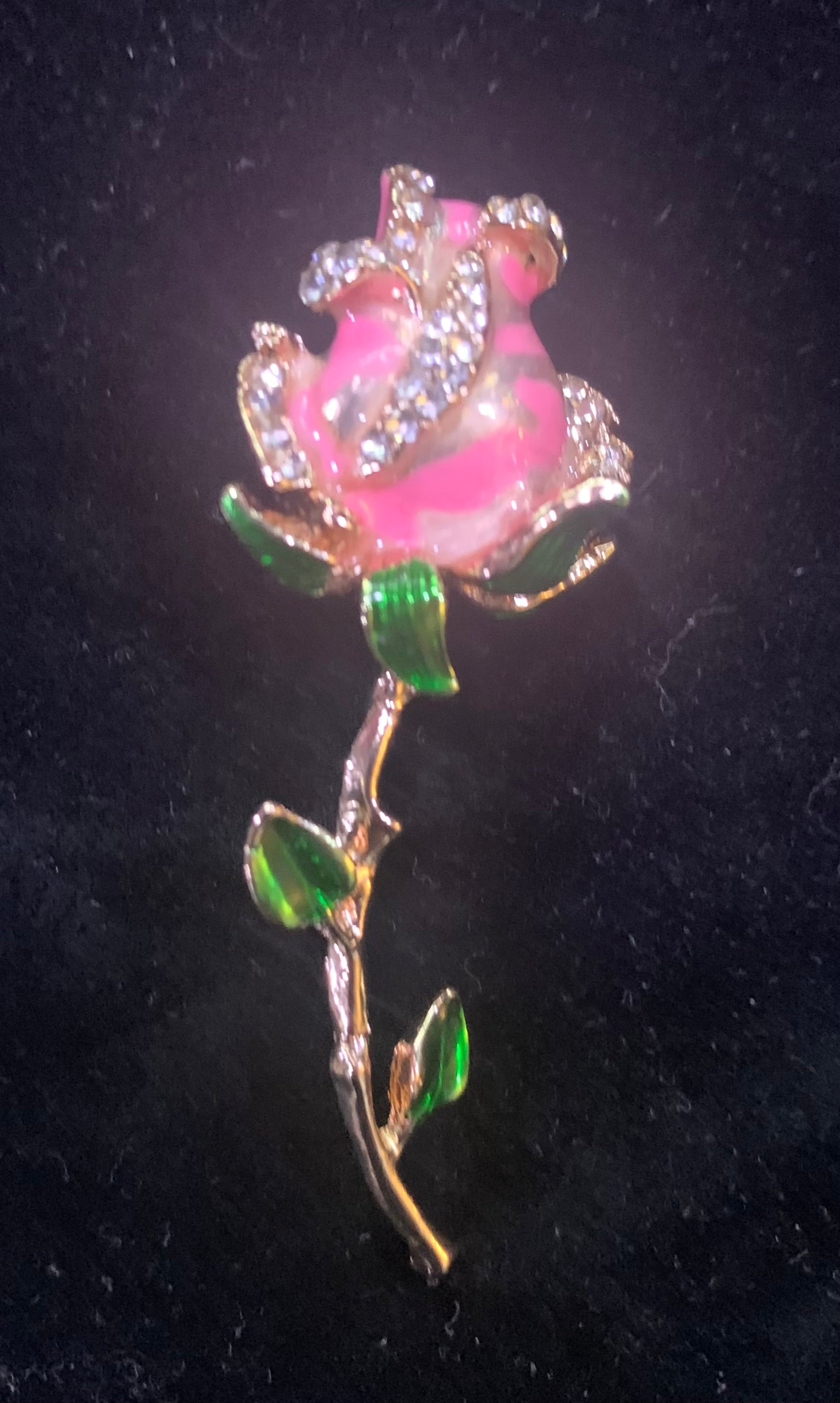 Metal zinc alloy pink Tea Rose with zircon rhinestones